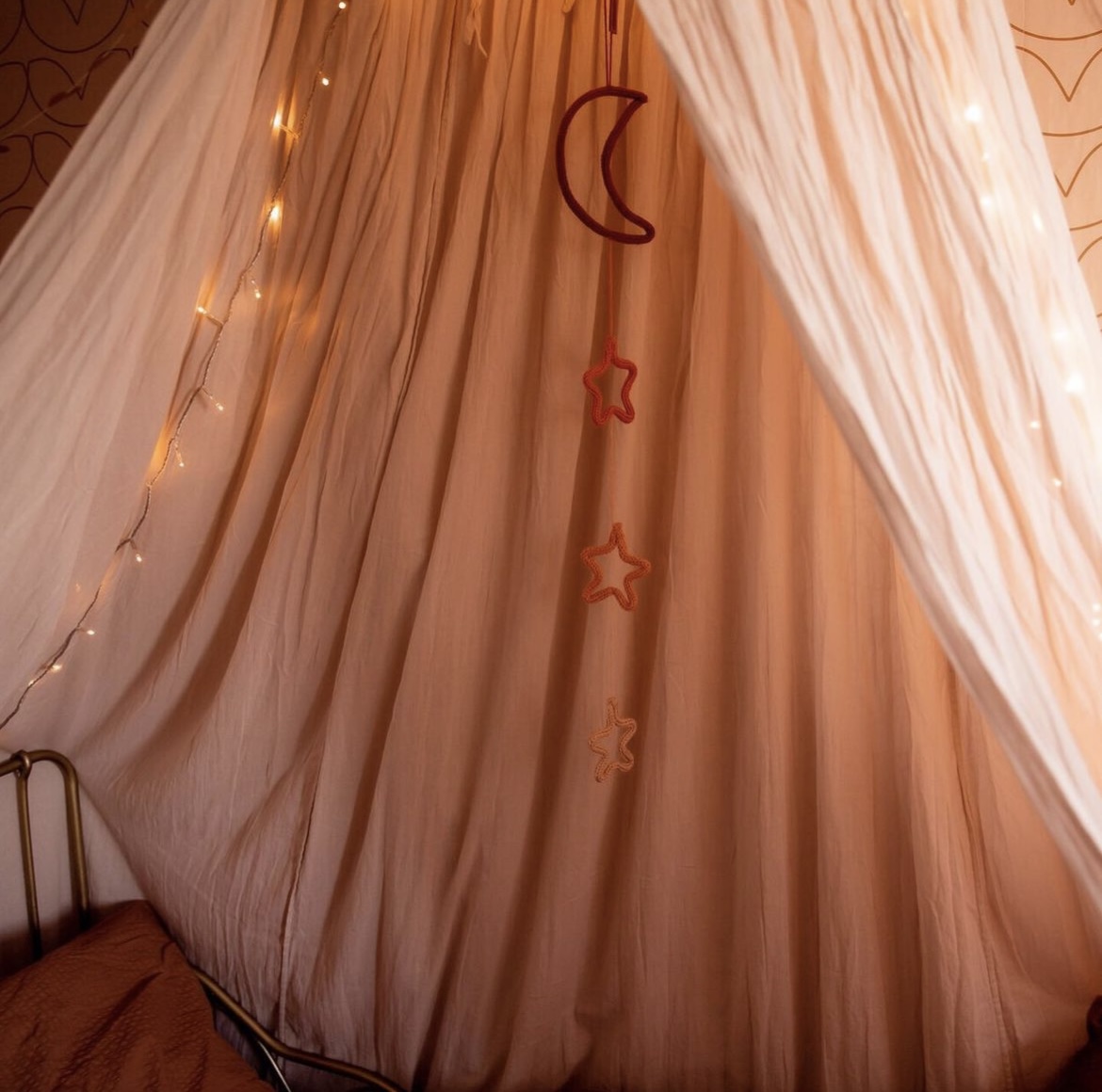 Prachtige hanger met een maantje en drie sterren. Heel mooi om aan de muur te hangen of in een hemeltje.